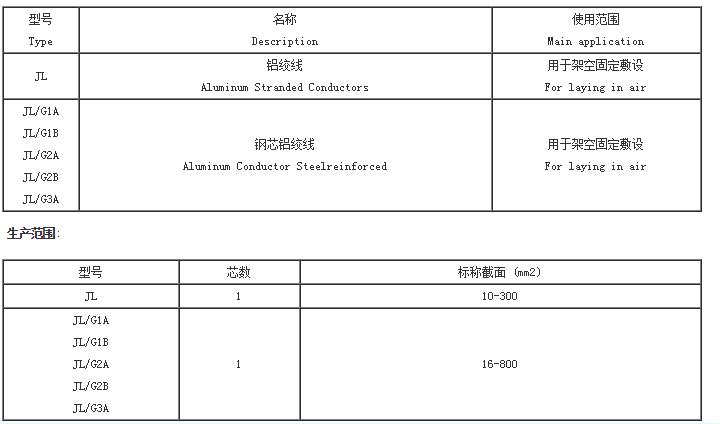 本产品适用于架空电力线路。产品执行GB/T1179-1999《圆线同心绞架空导线》标准。