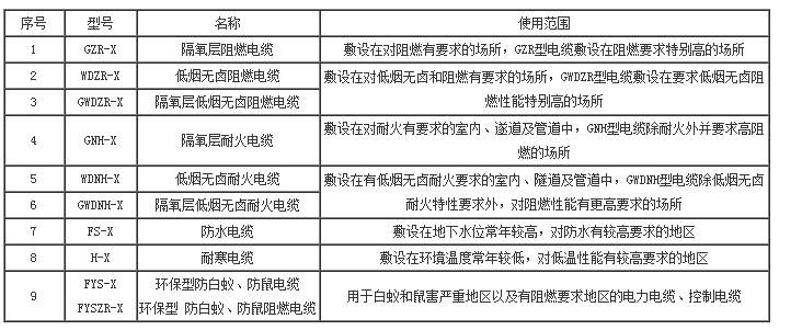 注:1、X-表示常用的电缆型号。2、特种电缆型号是在常规电缆型号前加特种型号。